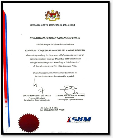 NARATIF USAHA KEMAJUAN KOPERASI YAQEEN AL MAYAN SELANGOR BERHAD